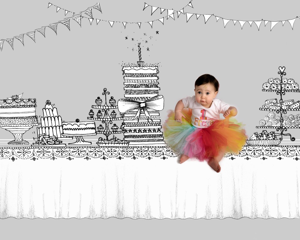 The tutu and top modelled by the adorable Freya, on the table of cake, were created by the super talented Fi at Katy Lou Designs. If you’re looking for a personalised outfit for your special occasion (and photoshoot!) this is the place to shop!